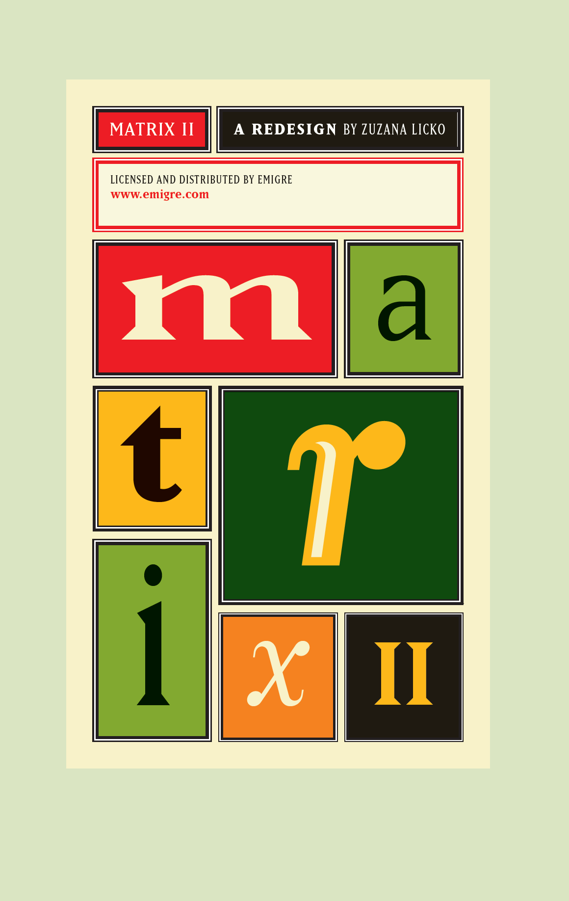 Matrix II is a complete reworking of the original Matrix type family which was designed by Zuzana Licko in 1986.